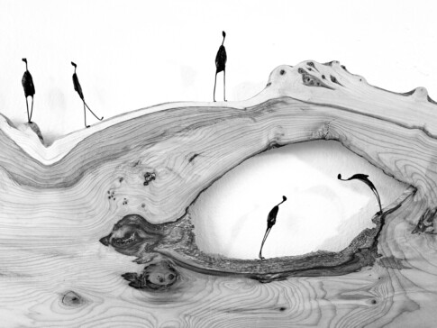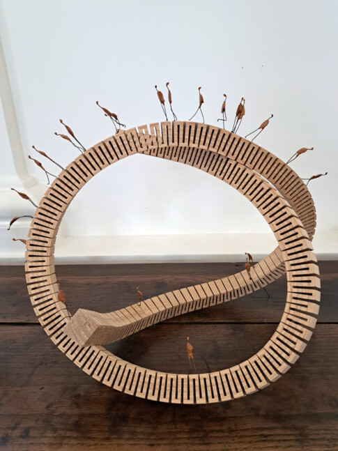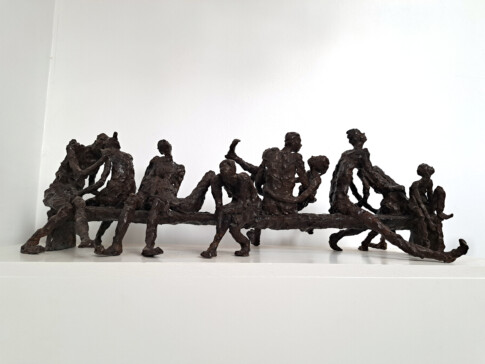Mes petits personnages se regroupent ou s’isolent selon leurs envies, leurs humeurs, comme des fragments d’humanité. Ils n’imposent rien : j’espère que chacun pourra y projeter sa propre histoire, se laisser toucher, inventer une narration intime à travers eux.