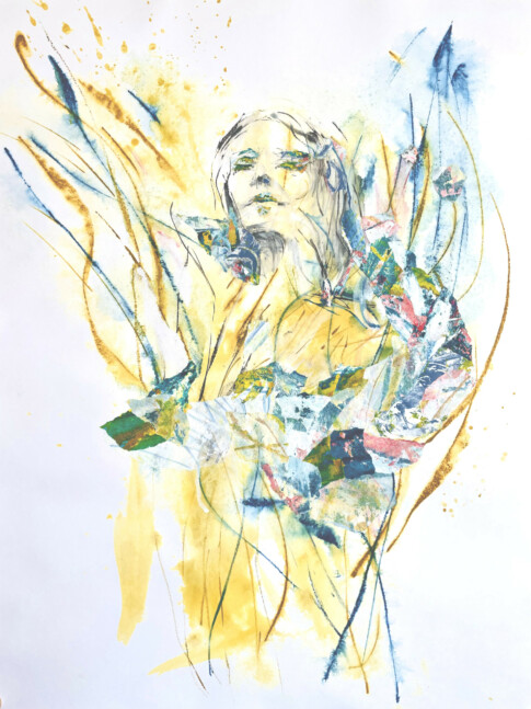 Plus récemment, parallèlement à la pratique de l’installation et du dessin en millefeuille, elle revient vers une peinture totalement faite main, caractérisée par une approche artistique tactile, mêlant gravure à l’embossage, aquarelle et collage. Elle y aborde, entre autres, des thématiques universelles comme le toucher et l’étreinte, remèdes aux maux d’une société de plus en plus dématérialisée.