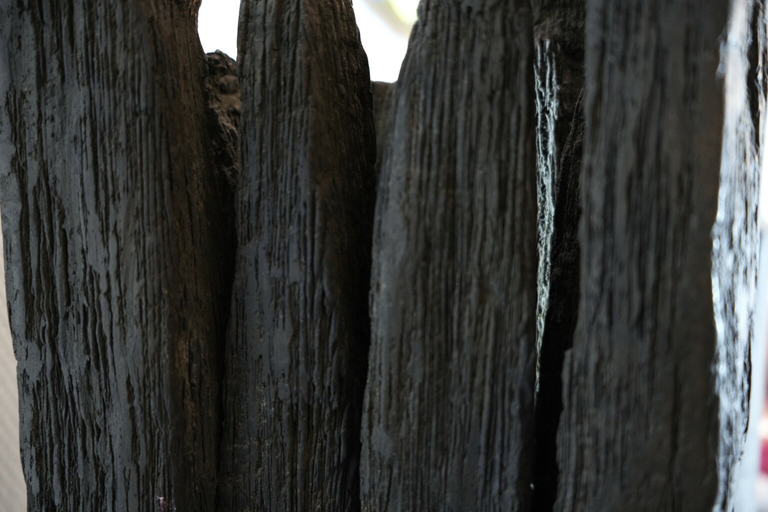 Le choix du matériau, la cire, n’est pas anodin. C’est un matériau léger, qui peut être éphémère, si on le chauffe, il fond. Mais qui est aussi éternel. Il est teint dans la masse, avec différentes nuances de noir, il capte la lumière dans l’obscurité. Chaque pièce est unique.