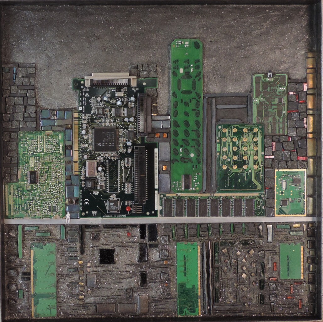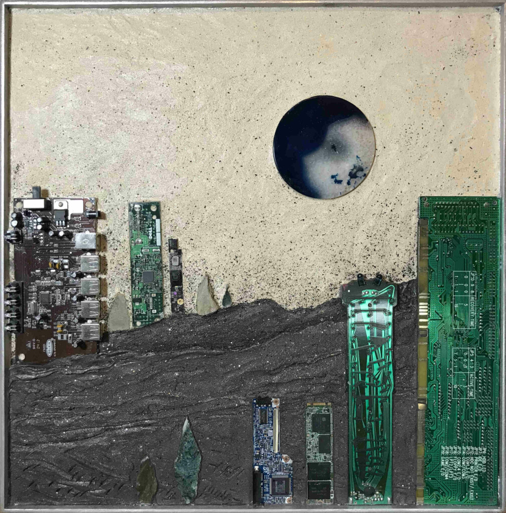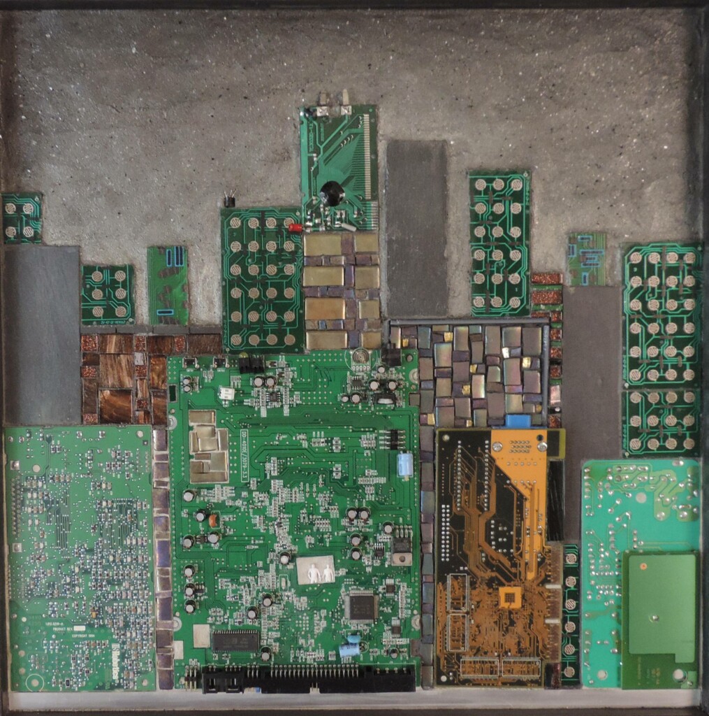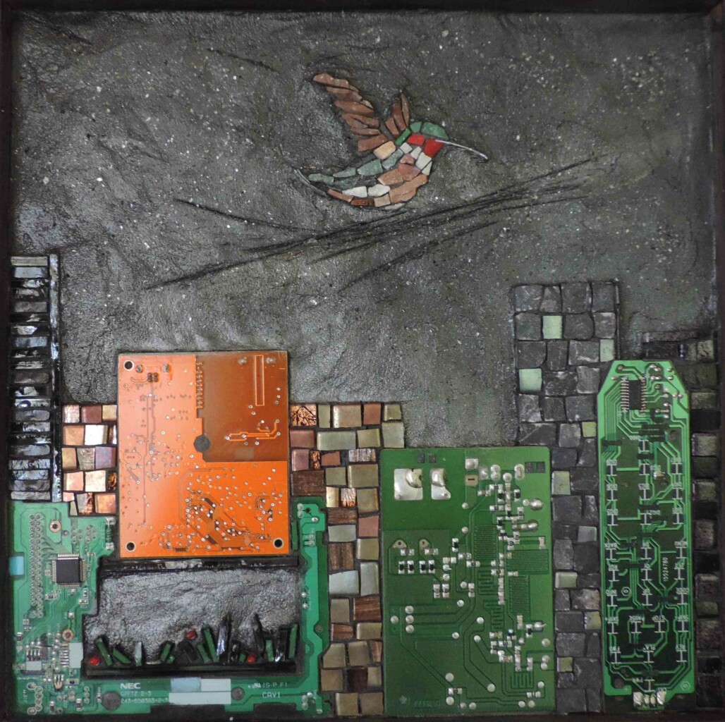 Estelle Zuber explore l’art millénaire de la mosaïque avec une approche résolument moderne et poétique. En alliant maîtrise technique et innovation, minéraux, circuits imprimés et matériaux divers, elle redéfinit le langage de la mosaïque dans l’art contemporain.